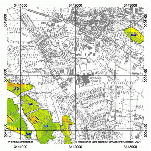 Großlage: Steinmächer, Lage: Judenkirch, Größe: 6,6 ha Großlage: Steinmächer, Lage: Marschall, Größe: 8,26 ha Großlage: Steinmächer, Lage: Homberg, Größe: 7,19 ha Großlage: Steinmächer, Lage: Herrnberg, Größe: 6,74 ha Großlage: Steinmächer, Lage: Hölle, Größe: 1,23 ha Großlage: Steinmächer, Lage: Hölle, Größe: 22,28 ha