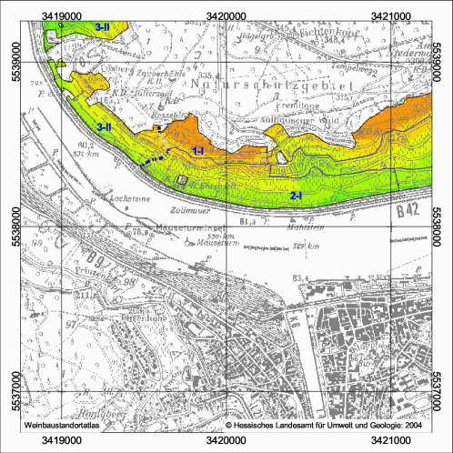 Großlage: Steil, Lage: Frankenthal, Größe: 13,6 ha Großlage: Steil, Lage: Frankenthal, Größe: 15,73 ha Großlage: Burgweg, Lage: Berg Kaisersteinfels, Größe: 8,21 ha Großlage: Burgweg, Lage: Berg Schloßberg, Größe: 30,33 ha