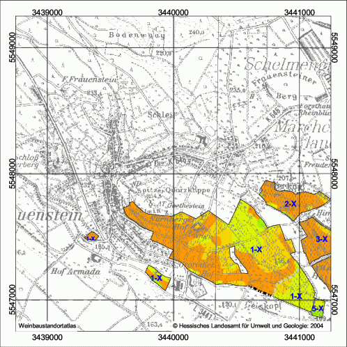 Großlage: Steinmächer, Lage: Herrnberg, Größe: 54,1 ha Großlage: Steinmächer, Lage: Herrnberg, Größe: 1,72 ha Großlage: Steinmächer, Lage: Herrnberg, Größe: 0,47 ha Großlage: Steinmächer, Lage: Marschall, Größe: 8,26 ha Großlage: Steinmächer, Lage: Homberg, Größe: 7,19 ha Großlage: Steinmächer, Lage: Herrnberg, Größe: 6,74 ha Großlage: Steinmächer, Lage: Hölle, Größe: 1,23 ha
