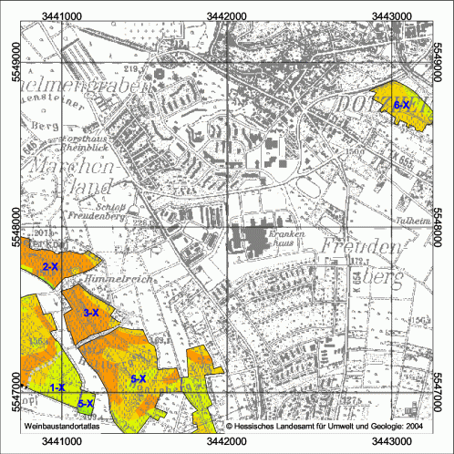 Großlage: Steinmächer, Lage: Judenkirch, Größe: 6,6 ha Großlage: Steinmächer, Lage: Marschall, Größe: 8,26 ha Großlage: Steinmächer, Lage: Homberg, Größe: 7,19 ha Großlage: Steinmächer, Lage: Herrnberg, Größe: 6,74 ha Großlage: Steinmächer, Lage: Hölle, Größe: 1,23 ha Großlage: Steinmächer, Lage: Hölle, Größe: 22,28 ha