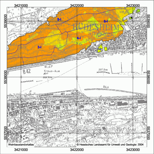 Großlage: Burgweg, Lage: Berg Roseneck, Größe: 30,78 ha Großlage: Burgweg, Lage: Berg Rottland, Größe: 37,27 ha Großlage: Burgweg, Lage: Drachenstein, Größe: 49,74 ha Großlage: Burgweg, Lage: Bischofsberg, Größe: 34,52 ha Großlage: Burgweg, Lage: Rosengarten, Größe: 0,83 ha