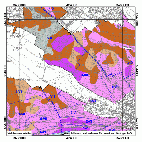 Collective vineyard: Heiligenstock, Vineyard: Klosterberg, Size: 12,45 ha Collective vineyard: Heiligenstock, Vineyard: Sandgrub, Size: 112 ha Collective vineyard: Honigberg, Vineyard: einzellagenfrei, Size: 14,17 ha Collective vineyard: Honigberg, Vineyard: einzellagenfrei, Size: 88,13 ha Collective vineyard: Honigberg, Vineyard: Marcobrunn, Size: 9,6 ha Collective vineyard: Honigberg, Vineyard: Siegelsberg, Size: 16,58 ha Collective vineyard: Honigberg, Vineyard: Michelmark, Size: 0,56 ha Collective vineyard: Honigberg, Vineyard: Michelmark, Size: 17,73 ha Collective vineyard: Honigberg, Vineyard: Michelmark, Size: 34,64 ha Collective vineyard: Honigberg, Vineyard: Schloßberg, Size: 7,89 ha Collective vineyard: Honigberg, Vineyard: Hohenrain, Size: 19,84 ha Collective vineyard: Honigberg, Vineyard: Steinmorgen, Size: 2,96 ha Collective vineyard: Deutelsberg, Vineyard: Heiligenberg, Size: 24,54 ha Collective vineyard: Deutelsberg, Vineyard: Rheingarten, Size: 1,72 ha Collective vineyard: Deutelsberg, Vineyard: Mannberg, Size: 8,92 ha Collective vineyard: Deutelsberg, Vineyard: Nußbrunnen, Size: 12,22 ha Collective vineyard: Deutelsberg, Vineyard: Wisselbrunnen, Size: 17,72 ha Collective vineyard: Deutelsberg, Vineyard: Hassel, Size: 35,68 ha