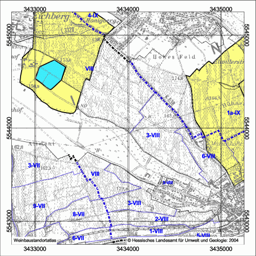 Collective vineyard: Heiligenstock, Vineyard: Klosterberg, Size: 12,45 ha Collective vineyard: Heiligenstock, Vineyard: Sandgrub, Size: 112 ha Collective vineyard: Honigberg, Vineyard: einzellagenfrei, Size: 14,17 ha Collective vineyard: Honigberg, Vineyard: einzellagenfrei, Size: 88,13 ha Collective vineyard: Honigberg, Vineyard: Marcobrunn, Size: 9,6 ha Collective vineyard: Honigberg, Vineyard: Siegelsberg, Size: 16,58 ha Collective vineyard: Honigberg, Vineyard: Michelmark, Size: 0,56 ha Collective vineyard: Honigberg, Vineyard: Michelmark, Size: 17,73 ha Collective vineyard: Honigberg, Vineyard: Michelmark, Size: 34,64 ha Collective vineyard: Honigberg, Vineyard: Schloßberg, Size: 7,89 ha Collective vineyard: Honigberg, Vineyard: Hohenrain, Size: 19,84 ha Collective vineyard: Honigberg, Vineyard: Steinmorgen, Size: 2,96 ha Collective vineyard: Deutelsberg, Vineyard: Heiligenberg, Size: 24,54 ha Collective vineyard: Deutelsberg, Vineyard: Rheingarten, Size: 1,72 ha Collective vineyard: Deutelsberg, Vineyard: Mannberg, Size: 8,92 ha Collective vineyard: Deutelsberg, Vineyard: Nußbrunnen, Size: 12,22 ha Collective vineyard: Deutelsberg, Vineyard: Wisselbrunnen, Size: 17,72 ha Collective vineyard: Deutelsberg, Vineyard: Hassel, Size: 35,68 ha