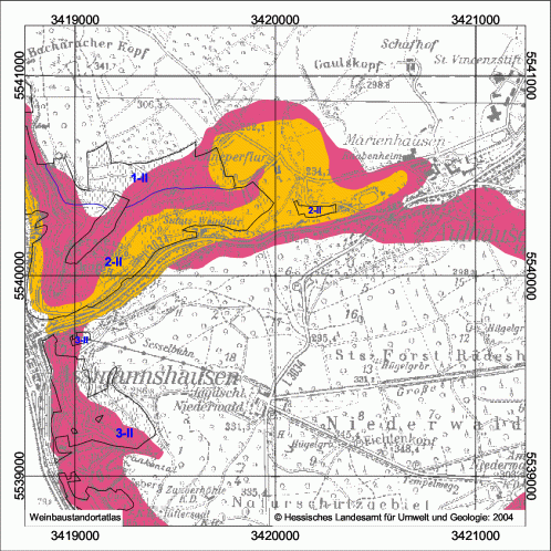 Collective vineyard: Steil, Vineyard: Hinterkirch, Size: 16,22 ha Collective vineyard: Steil, Vineyard: Höllenberg, Size: 42,91 ha Collective vineyard: Steil, Vineyard: Frankenthal, Size: 0,45 ha Collective vineyard: Steil, Vineyard: Frankenthal, Size: 15,73 ha Collective vineyard: Steil, Vineyard: Höllenberg, Size: 0,94 ha