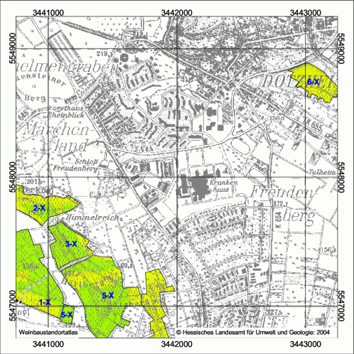 Collective vineyard: Steinmächer, Vineyard: Judenkirch, Size: 6,6 ha Collective vineyard: Steinmächer, Vineyard: Marschall, Size: 8,26 ha Collective vineyard: Steinmächer, Vineyard: Homberg, Size: 7,19 ha Collective vineyard: Steinmächer, Vineyard: Herrnberg, Size: 6,74 ha Collective vineyard: Steinmächer, Vineyard: Hölle, Size: 1,23 ha Collective vineyard: Steinmächer, Vineyard: Hölle, Size: 22,28 ha