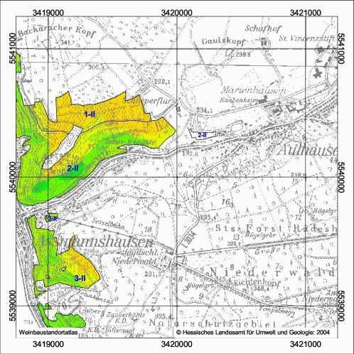 Collective vineyard: Steil, Vineyard: Hinterkirch, Size: 16,22 ha Collective vineyard: Steil, Vineyard: Höllenberg, Size: 42,91 ha Collective vineyard: Steil, Vineyard: Frankenthal, Size: 0,45 ha Collective vineyard: Steil, Vineyard: Frankenthal, Size: 15,73 ha Collective vineyard: Steil, Vineyard: Höllenberg, Size: 0,94 ha