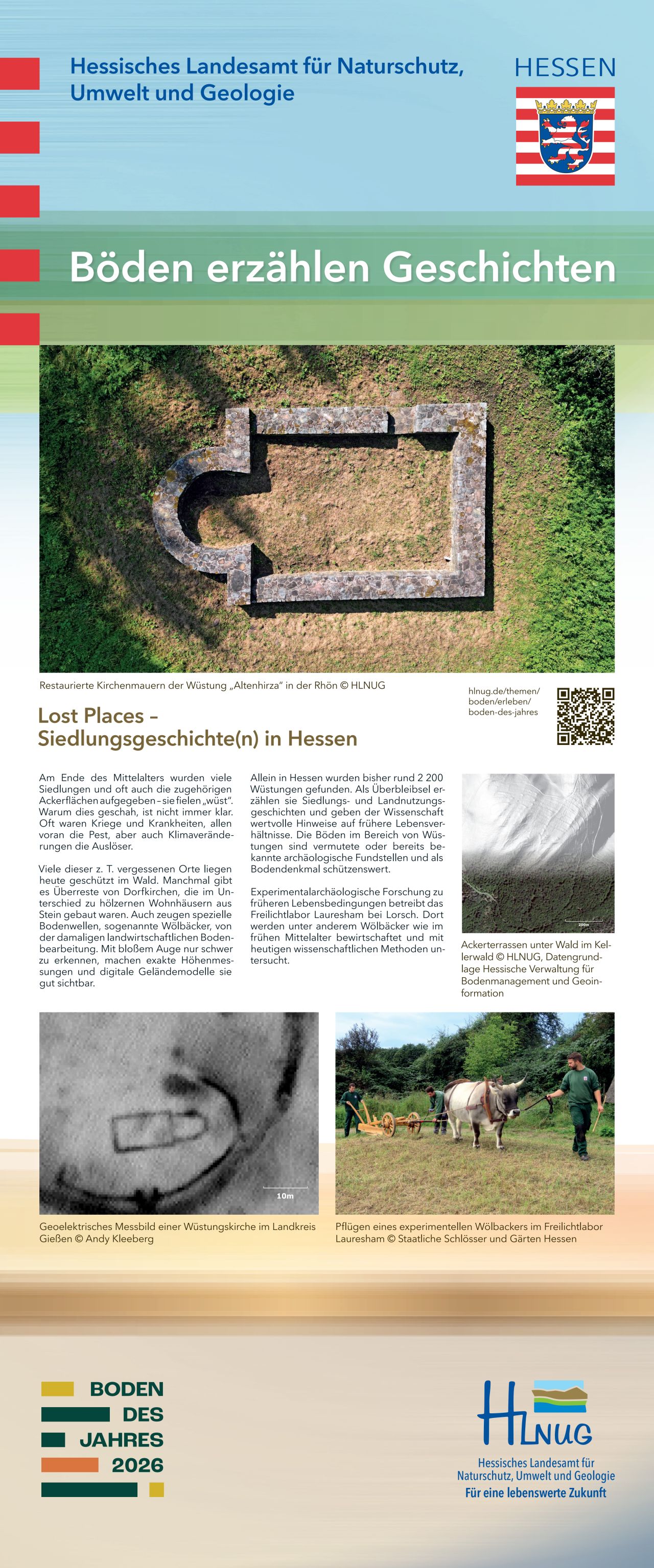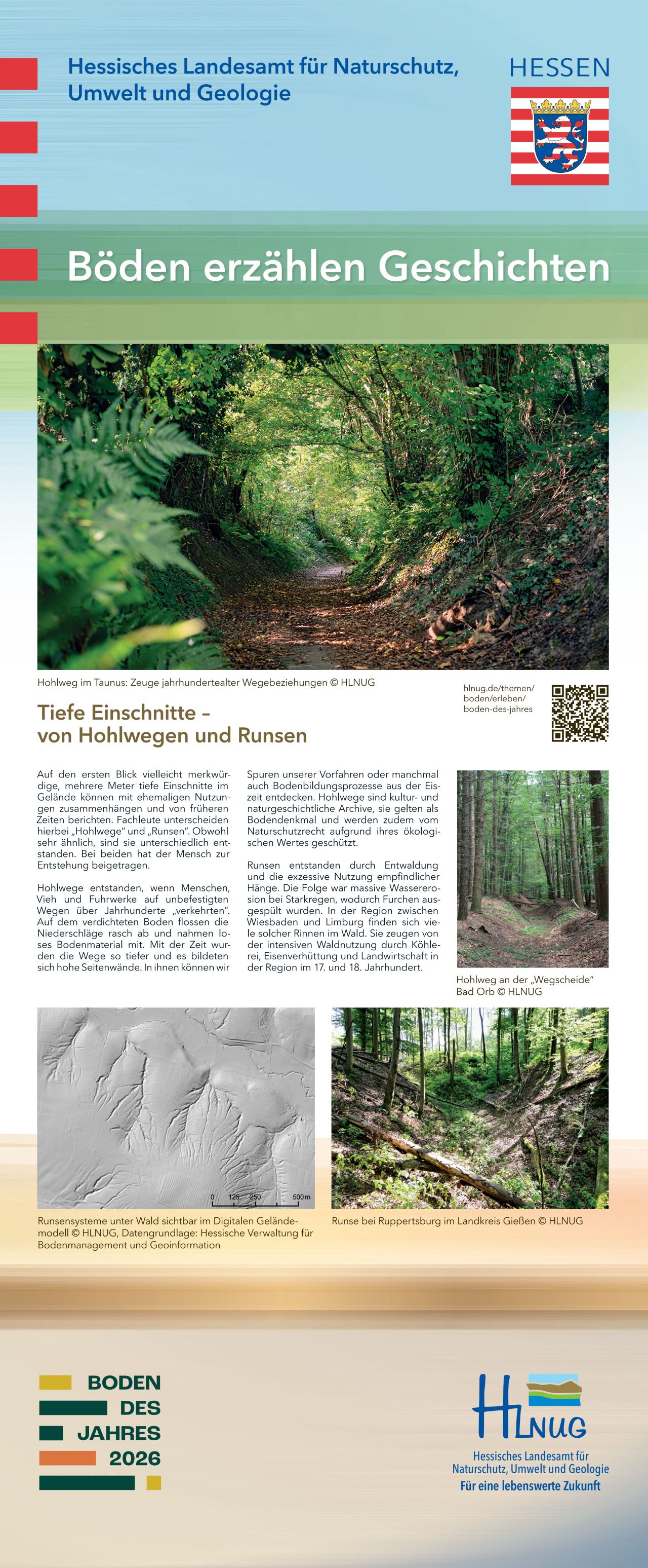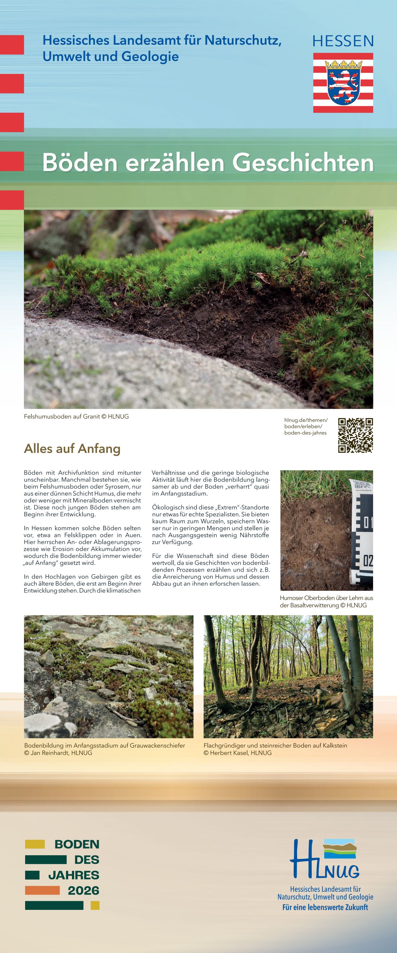 Für die vielfältigen Themenbereiche zum Boden und dem Vorsorgenden Bodenschutz stellt das HLNUG eine Bodenwanderausstellung zur Verfügung, die von Institutionen, Vereinen u.a. unentgeltlich ausgeliehen werden kann.