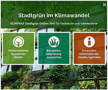 Im Projekt KLIMPRAX Stadtgrün wurde das einfach anwendbare Online-Tool “Stadtgrün im Klimawandel” für die Planung und Umsetzung von klimaresilienter Begrünung erarbeitet, um vor allem Städte und Gemeinden bestmöglich zu unterstützen.